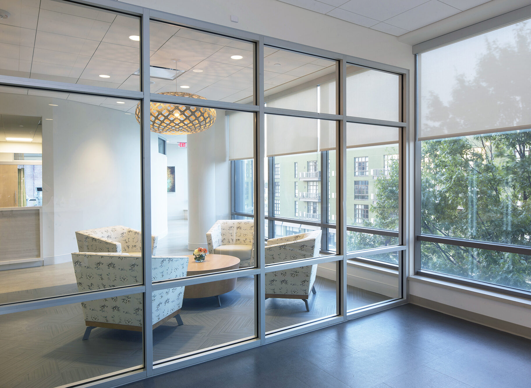 - Accompanying modular seating and occasional tables offered.