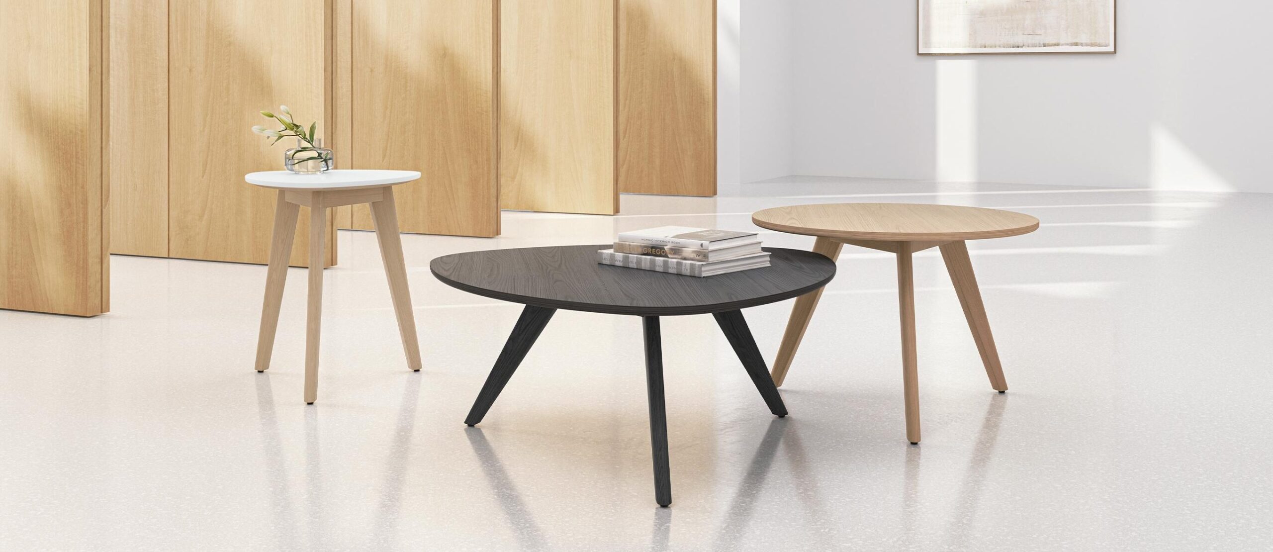 Ravelle tables add a distinctive cadence to modern interiors with round and soft triangular forms that nest together with ease. This versatile collection plays into today’s trend of flexible, mixed-height groupings offering the freedom to style as one, or curate in multiples. With a variety of finish options, Ravelle adapts to any aesthetic, making symmetry, contrast, or uniformity the order of the day.