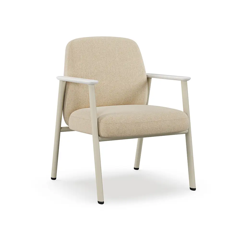 Designed with comfort and care in mind, Soa brings a sense of tranquility to healthcare environments. Embracing softer forms, from an elliptical tube frame and radiused arm caps, to a cushiony seat and back, its soothing presence creates a warm and welcoming space for everyone.